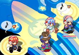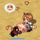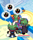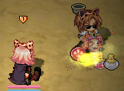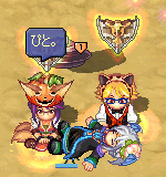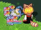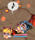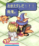 滑り台の上で露店中の見知らぬきつねーさんに、フタリしていろんなアイテムを投げてみたり。