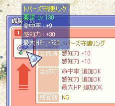 皆さんが落ちた後、少し時間があったので守護リングを感知合成してみました。