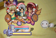 柴生ちゃんとどらこは手前の方で1匹ずつタニアを殴ります。